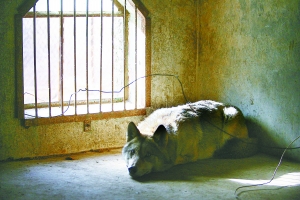 昨天,八达岭野生动物园将这条狼安置在独立的狼舍中。昨日中午,这条狼不断在狼舍中来回走动,不时还张开嘴露出尖尖的獠牙。见到人后,狼退缩到狼舍一角。