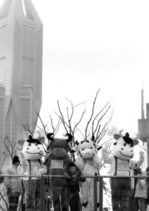 4名求职屡屡受挫的年轻人,在踏上回家过年的列车前,突发奇想地租来卡通牛的服装,扮成“牛人”走上街头,为路人送上新年祝福。昨天,在徐家汇、人民广场、南京东路步行街等闹市区,这群“牛人”所到之处引来市民的友善拥抱和热情鼓励。