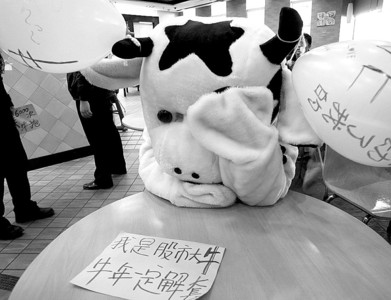 昨天上午10点,徐家汇商圈的人群中突然冒出4名身着卡通服装的“牛人”,向来往路人送上拥抱和新年祝福。原来,他们是来上海求职的外地大学生,以这种行为艺术方式为市民送上祝福,同时也鼓励自己“牛年一定牛”。听说他们在征集6000次拥抱或合影,祝福股市冲回6000点,路人方小姐毫不犹豫地拉着男友上前给了一个大大的拥抱。“我们的私房钱全套在股市里了,但愿明年迎来牛市。 ”