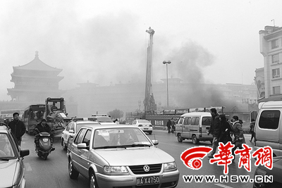 出事地点位于地铁二号线钟楼站右线隧道北端。上午10时20分许,记者赶到现场,看到坑道内不断向外冒黑烟,且越来越浓,浓烟顺着隧道从20米外的另一出口排出,很快,钟楼便笼罩在浓烟中,行人纷纷掩鼻而过。数名身着防护服背着压缩空气的消防战士正在坑道作业,一名消防战士说,因为着火处有障碍物且浓烟影响视线,所以只能在外围灭火。11时许,烟雾明显减少。