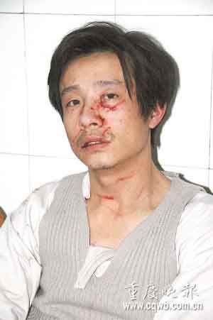 受伤的哥叫杜武,今年36岁,身体瘦弱,身高不到1米6,戴着一副近视眼镜。昨日,杜武还躺在潼南县人民医院接受治疗,面部伤痕累累。