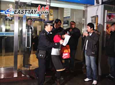 记者在现场看到,该女子看上去三十多岁,脸色有些发暗。当无人靠近时,她便面对ATM机默不作声,而一旦有人接近试图和她说话,她便又开口大骂起来。3位民警陆续赶到,对女子进行了劝说。当晚6时,女子终于戴好手套拿起包和塑料袋开门走出,并被民警带上警车。令在场人员感到不解的是,女子在上车前一扫之前的愤怒,竟咧开嘴笑了。