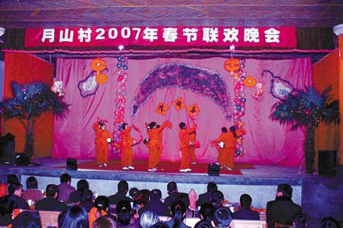 2005年1月底,本报记者第一次走进这个位于浙江与福建交界处的小山村。深山之中的月山村依山傍水,溪流潺潺,竹林婆娑,廊桥横跨,祠堂静矗,一幅世外桃源的模样。2月1日晚,月山春晚在村大礼堂上演,村民们表演了越剧、拉二胡、相声、双簧、舞蹈、诗歌朗诵等节目,气氛煞是热闹。这是记者第一次接触这台最山寨的春晚。