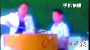 昨日,记者从网上搜得由该校学生用手机偷拍的两段视频,在第一段视频中一穿粉红色衣服的女教师在课堂上掌掴一名学生,视频中打学生的老师正好背对着讲台下的学生,当着全班学生面打了这名学生几巴掌。据该班另一名学生私底下介绍,这名掌掴学生的女老师姓尚,为该校初一某班的语文教师。
