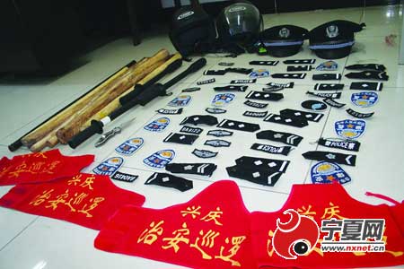 前来增援的50多名警员立即对“红粉帝国”进行搜查,缴获一批假警服、棍棒、管制刀具。让警方感到吃惊的是,这些黑保安不仅配备假警服,还有警用防刺背心,警号、警徽、肩章应有尽有,黑保安胳膊上还佩戴着自制的“治安巡防”袖章。警方当场抓获5名裸陪小姐,42名陪侍小姐,8名袭警的黑保安和该场所老板及工作人员3名。经现场检测,当时有客人在包间吸食新型毒品。