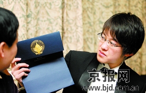 受美国国会青年领袖委员会邀请,本月17日,人大附中高三(4)班学生李木子即将启程赴美,参加美国首位黑人总统奥巴马的就职仪式。小李从初中时起便对国内外的时政大事很感兴趣。去年夏天,李木子和人大附中的另外2名同学参加了在美国举行的“全球青年领袖会议”。会议期间,他们在纽约的“模拟联合国”内就全球能源、环境、气候等热点问题发表演讲。李木子还扮演“俄罗斯驻联合国大使”,与世界各地的优秀高中生讨论、磋商有关“国际性问题”。娴熟的英语、准确的表达、独到的见解,博得与会同龄人的喝彩和主办方的赏识。就在奥巴马获得民主党总统候选人提名的当天,李木子也收到了一份特殊的邀请函——“参加美国新任总统就职仪式函”。当时他并不知道自己会成为北京唯一一名获邀学生代表。