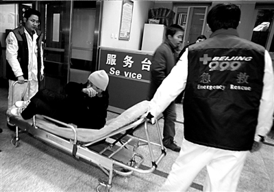 昨天下午5点多,小邱接受完警方的简单问询后,被救护车送往积水潭医院。经医院检查,小邱右腿骨折,需马上做手术,如不手术,有落下残疾的危险。小邱说,他刚来北京两个多月,身上没有多少钱,父母远在河北承德,也来不及送钱。