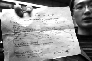 “我觉得银行应该有责任。”刘先生说,这是第一次从自动取款机上取到假钞。昨日,银行经理告诉他,以银行的技术不可能出现这种问题,并将刘先生的假钞收缴了。 (记者 叶婧)