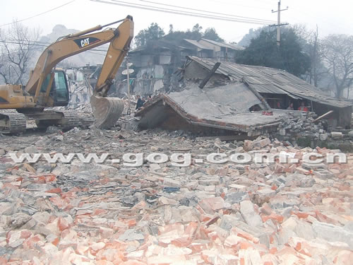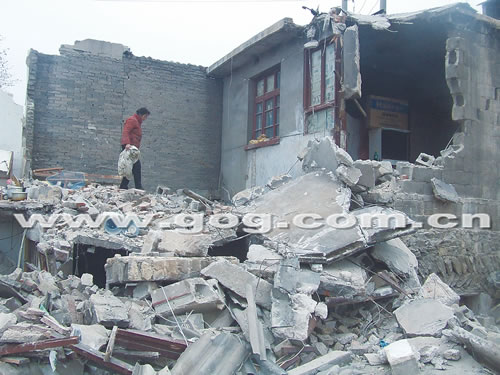 昨日下午,记者接到读者报料后,再次来到贵阳青山路的拆迁现场,看到一片拆迁废墟上,几栋民房均已遭到不同程度的破坏。王雪娜家房屋已经被拆掉了大半,其母亲正在废墟堆里刨一些物品。“家里现金和摄像机等贵重物品都被搜走了,冰箱和彩电也被砸坏了……”王雪娜说,当时在场的不明身份男子至少有200多人,如果不是警方赶到并鸣枪制止,或许她家的房子早就被完全拆掉了。另一拆迁户也向记者证实,当时警方确实开枪制止了。