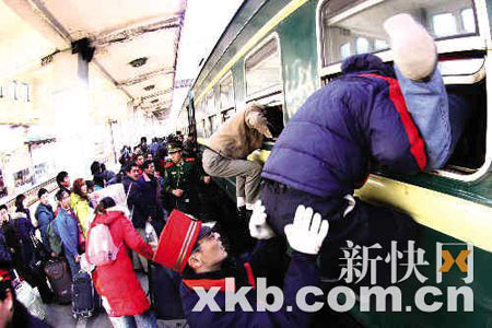 对于很多坐火车回家的买到火车票已经是一件幸事,还有不少网友在为买票扑腾和痛苦。网友“FBI阿磊”讲述了一个讽刺故事:“在公交车里听到别人打电话到电台点歌,有一个男人打电话进去说:‘我是外地人,现在回家的车票买不到了,只好在厦门过年。我想点首歌。’主持人问他:‘你想点歌送给谁?’他回答道:‘我想点一首陈小春的《算你狠》,送给铁道部工作人员以及所有票贩子。’”