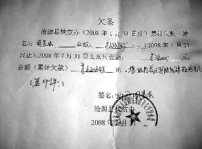 “沧源县的村民们安居乐业了,他们的喜悦中有我们永平县农民工的无数汗水,可是沧源县扶贫办拖欠我们的60多万元工资余款至今还是白条一张。我们承包的工程是扶贫项目,有国家下拨的专项扶贫资金,两年来我们不断去讨要我们的血汗钱,可扶贫办总说没有钱,那么这60多万元扶贫资金哪去了?”农民工周显本对此大惑不解。