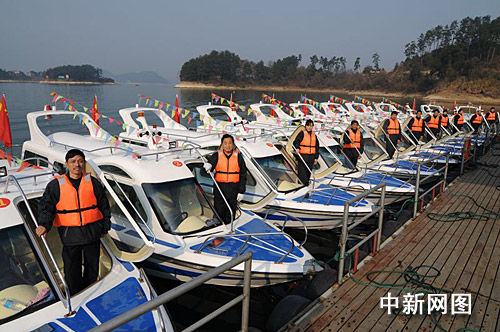 目前,杭州市淳安县地方海事部门正在积极办理相关证书,争取在春节黄金周期间,使千岛湖新下水的首批15艘豪华游艇投入营运,届时,游客们可乘坐新游艇驰骋在湖光山色之间。(完)