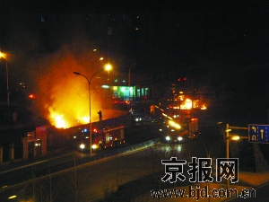 今天凌晨5时许,(北京市)通州区杨庄北方红旗机电市场路口一烟花爆竹销售点发生火灾,大火将现场所有鞭炮以及摊主的一辆银白色面包车全部烧毁,燃烧的鞭炮还将30米开外马路对过的草堆点燃,60名消防员扑救了近一个小时才将大火扑灭,现场未发现人员伤亡。
