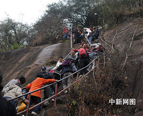 记者在登山的时候,发现了一拨来自四川灾区的同胞们也赶至丹霞山庆新年。他们是曾氏家族、四世同堂30多人浩浩荡荡地开着五部车从成都慕名来到丹霞山,他们在这雄伟壮观的丹霞美景的面前,也许下了对四川、对祖国的美好新年祝愿:“丹霞最美、丹霞最牛、四川雄起、祖国昌盛”!
