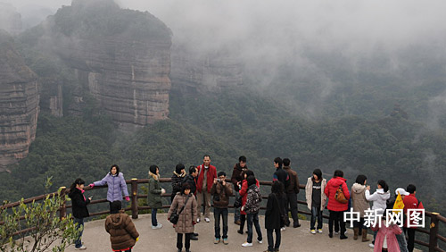 中新网韶关1月31日电(冯昶 刘加青 李正红)从大年初五起,由于天气转好,广东韶关市丹霞山风景区出现美丽的云海景观,吸引众多游客观赏,景区接待持继升温。据统计,昨日共接待游客近2.6万人次。自助自驾游游客剧增,同比增长一倍半以上,其中有不少来自四川灾区的民众。