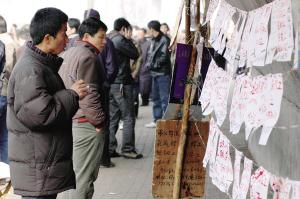劳动部门提醒,路边求职会留下许多隐患,一旦发生劳动纠纷,在没签劳动合同的情况下维权十分困难,利益受损的多为劳动者。(陈珂 隋淼)