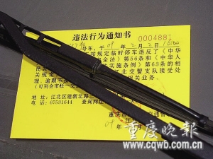从贴图看,事发2日下午4时,牌号“渝A39××警”的制式警车在公路边停靠时,雨刮处被张贴了交通违法行为通知书,通知书编号0004881。从通知书内容可知:这辆警车是因为不按规定临时停车而被交警开了罚单。