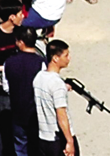 据酒店老板刘某称,2008年1月12日,由于村民不同意自己在向政府租借的地方建起围墙,当天一部分村民将所建的围墙强行拆除了。而同一时间,在他酒店外的马路上,有多名手持“冲锋枪”或“AK47”的男子在晃来晃去。“因为当时怕村民会冲击酒店,所以我报了警,警方共出动了七八十人来保卫酒店,但他们就当着警察的面拿着枪在那里走动。”刘某称,对于那些持枪者他均不认识。