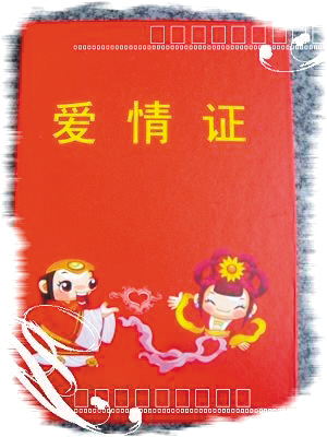 各种各样的“爱情证书”的颁发机构非常有意思,有“天长地久爱情协会”,有“爱情证书批发中心”,也有“月老一线牵爱情鉴定中心”,还有“中华人民共和国幸福总署”等。
