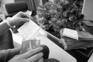 市福彩中心为了能让前往婚姻登记处结婚的新婚夫妇有一个难忘的情人节,昨日专门采购了近1000朵红玫瑰,为这些新婚夫妇送上一个惊喜。今日早上,这1000朵红玫瑰被分发运送到主城各区婚姻登记处。随同红玫瑰一并送来的还有一份“红包”。工作人员介绍,只要在今天注册结婚的新婚夫妇,都可以得到一枝玫瑰和两个红包,“红包”中装有彩票一注。该工作人员说,仅情人节准备的红包就多达近2000个。