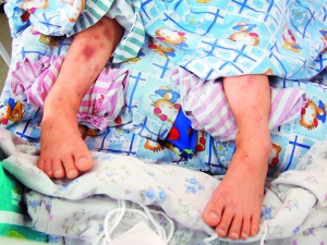 孩子小腿布满新鲜瘀伤