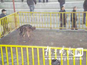 在斗狗场内,记者看到里面设有为狗疗伤和打兴奋剂的“医疗室”,还有训练狗的跑步机。斗狗场的中央,是一个由铁栏杆围起来的斗狗台,此时台内两只“比特犬”还在相互死死咬住不放,遍体鳞伤,其中一条黑狗头上的头皮已被撕开。台上全是斑斑血迹,场面相当惨烈。而看台一角,竟有家长抱着孩子在观看。民警们经过近20分钟的战斗,斗狗场内局面已经基本得到控制。从斗狗场围墙跳墙出逃的部分赌客,被外围包围的民警抓回10余人。民警从斗狗场“财务室”搜查出大量的押注单和数万元现金。这时记者才发现:院内光私家车就停有50余辆,不注意还以为是一个颇具规模的停车场。