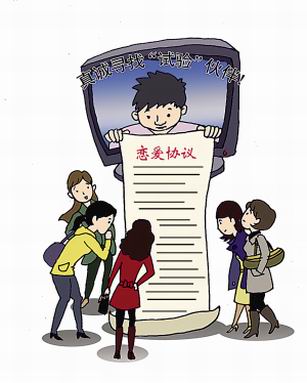 “大都市的爱情都太肤浅,太容易得到,也太容易失去。需要好好实习一下,才能懂得爱情的真谛。”近日,21岁的姜楠在网上发出一份《恋爱协议》,征集女性朋友和他谈一次协议恋爱。他把这样做的目的解释为:体验婚姻过程,学会珍惜,对以后真正的婚姻负责。