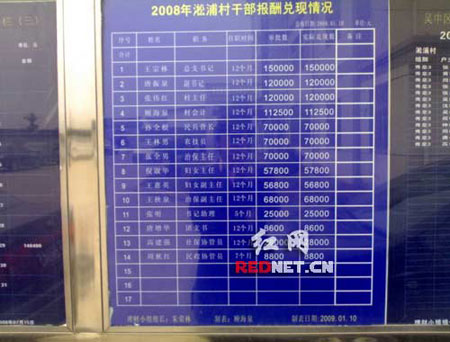 “一个村官年薪15万,吓得俺一跳!”16日中午,网友“湘水悠悠”在红网论坛发帖,称在搜狐新闻社区、天涯社区等网络社区看网友贴出的苏州市吴中区甪直镇淞浦村村务公开的一张照片,内容为2008年该村“村干部报酬兑现情况”,村支书年薪15万,村主任12万,月薪过万。有网友感慨说,“这收入可比公务员强多了”。
