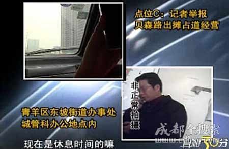 近日,成都电视台《真相30分》栏目组接到神秘举报电话。对方举报城管收取好处费,对出摊占道视而不见。对此,记者专门进行了暗访。成都全搜索网站记者通过影像资料发现,城管执法人员不仅有对出摊占道经营故意睁一只眼闭一只眼的嫌疑,还暴露了城管管理缺失的问题。