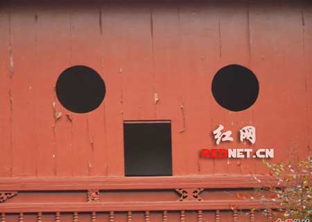 网络流行语“囧”有了实体,如始建于上世纪80年代的重庆“囧楼”,不过,长沙开福古寺有一座唐朝的“双囧楼”,风头更足。23日凌晨3点14分,网友“9008816”在红网论坛发布了一组开福寺的照片。照片上朱红色的木质小阁楼,呈“囧”字型。阁楼坐落在长沙开福寺藏经阁前,东西对称有两座。斑驳的朱漆,使“囧”字阁楼看起来历经沧桑。阁楼上古色古香的雕花精巧细腻,极富东方神韵。