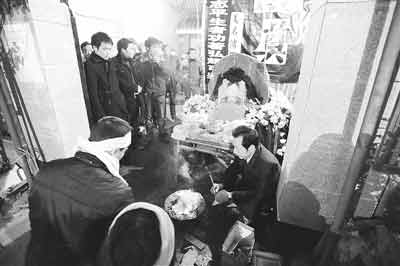 申天志一对20多岁的儿女披麻戴孝,申天志的妻子因悲伤过度没有露面。