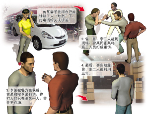检察官刘毅称,当时李某是开车去的,被围观群众记下了车牌号,警方据此将他抓获。曾、张二人得知李某被抓,商量由张某独自扛下此事,并统一口径“曾某不在打人现场,只有张一人动了手。”