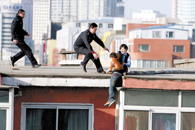 后来,我就趁捡衣服的工夫,看她没有防备,就动手抓住了她。当时她的大半个身体都悬在了楼外,我只能用脚死死地抵住楼顶,后背都被硌破了,鞋跟也磨秃了。