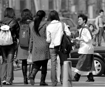 这家比萨店位于北京第二外国语学院北门,扮成“小沈阳”的服务员在北门十字路口发传单,许多学生从他身边走过时纷纷回头。“远看还挺像的”,二外的孙同学说,自己和同学进去试吃了传单上的“苏格兰打卤面”,感觉和西餐中的意大利面差不多。
