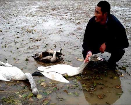 黄先银:看到那个鸟全部都死了,一看每天都是那么多,我想这样子还得了,若干年以后,不会超过20年,鄱阳湖里想看鸟都看不到了。