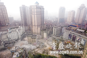 “轰!”昨天早上8点,伴随着一声巨响,江北观音桥商圈渝北二村二号地块的6栋居民楼瞬间倒塌,整个过程仅有1.5秒,丝毫未影响到周围密集的居民区和各种管网。据悉,这是今年我市危旧房改造的第一爆,爆破原址将建200多米高五星级酒店,成为江北第一高楼。
