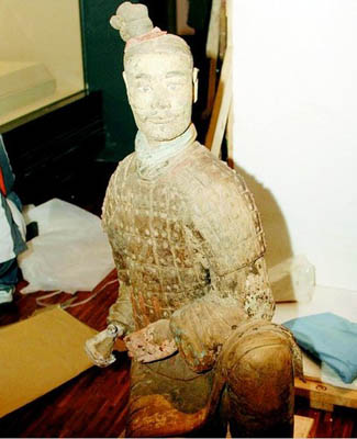 秦兵马俑中唯一的绿脸俑自从发现的那一天起,就一直备受关注。自去年3月27日绿脸俑亮相陕西历史博物馆以来,参观游客近百万人,专家学者、普通观众纷纷提出各种疑问和看法,争论至今还在继续。