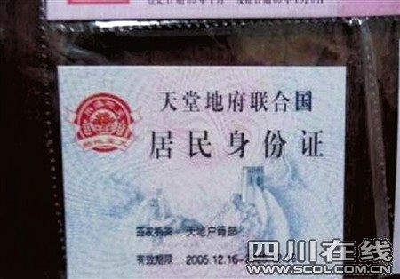 昨日,网友“小文”在成都某论坛上发帖,跟大家分享了他最近买到的“冥币”照片。照片里,有各种冥币“瑞士银行金卡”、“美容医疗保健卡”、“房地产权证”,甚至还有“天堂地府联合国居民身份证”。对此,省民俗学会副会长袁庭栋表示,祭祀应用一种理智的态度,抒发最真实、淳朴的情感。