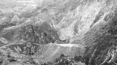 塌陷区周边竖着“塌陷区危险,严禁入内”的水泥板。通往塌陷区的道路,原来被石墙封堵,机械无法进入,但现在石墙已被打开。据介绍,3月18日,一伙人用挖掘机打开通往程潮塌陷区的道路。接下来的几天时间里,趁着夜色,4辆汽车进入塌陷区内,将矿石运出加工。