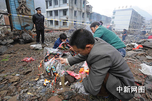 这是大地震后第一个传统清明节,老县城废墟外的封闭铁丝网清晨七时准默默打开,特意为此地幸存的父老乡亲们开放。绵绵人流回到已成废墟的千家万户和学校机关等地前,焚香燃烛,捧上鲜花。只听遍地哭声四起,人人都向遇难亲人倾吐衷肠。