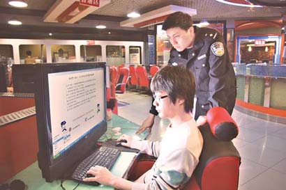 为了有效地减少冒充警察及电话局工作人员进行诈骗案件的发生,4月1日,北京市海淀公安分局科技信息通信处将自行开发的防诈骗提示软件安装并应用在辖区内的290家网吧约5万台电脑上。据介绍,到网吧上网的人员只要一打开计算机,便能够看到自动弹出的谨防诈骗提示。(本报记者 李松 黄洁 本报实习生 宫艺乐摄)