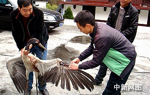 经检查,该黑颈鹤的左翅骨头已折断,伤口还在流血,工作人员迅速对伤口进行消毒处理,敷上消炎药,并喂其食物。由于保护区没有专业的兽医和救护设备,无法对黑颈鹤进行后续治疗,经请示上级主管部门,随后将其送到了雅安碧峰峡野生动物急救保护中心。(完)
