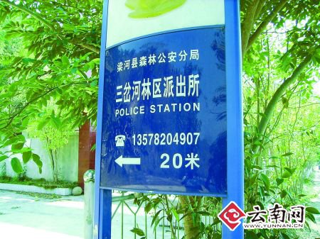 记者驱车前行500米左右,果然见到村民所说的梁河县森林公安分局三岔河林区派出所。派出所就在公路边,透过铁栅栏,记者看到派出所庭院内类似会客厅的门敞开着,但空无一人。