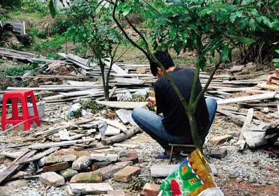 在父母辩解的同时,陈志文却显得很沉默,一个人躲到一边,不愿和记者交谈。记者问起他抢劫的事,他也只一直重复着“没做过”这句话。但记者发现,在和记者面对面交谈的时候,他明显有些紧张。接过记者带去的那张刊登有通缉令的报纸,看到自己的照片,他依然一言不发,脸色却有些发紫,一个人拿着工具又走开了。