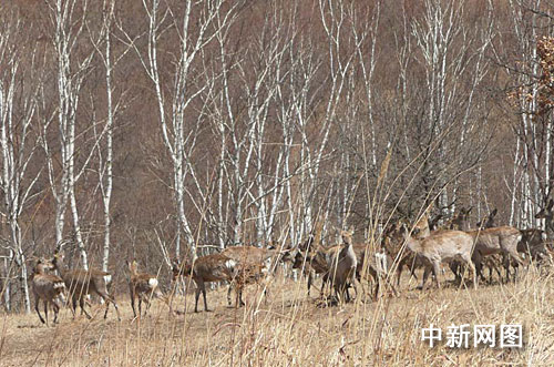据保护区所在地的桃山林场场长程旭介绍,该场养殖中心有狍子、梅花鹿、马鹿和麋鹿(俗称“四不像”)等共700多只,最近一次的数量普查发现,人工驯养的梅花鹿锐减了近1/7,以前很少见的“坐山雕”最近才多了起来,经常发现它们在附近的山头上,像一个人披了件大衣半蹲在那里。“据我们发现,至少有100多只梅花鹿先后被10余只坐山雕袭击分食,已经造成直接经济损失30余万元。现在,我现在最担心的是区内10只麋鹿的安全。”