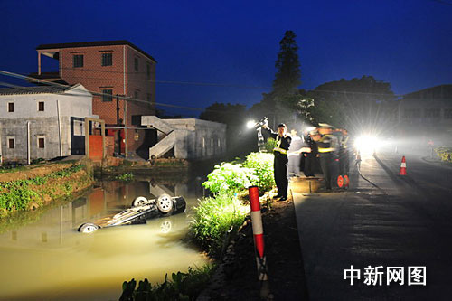 中新网江门4月12日电 (陈浩光 铁吉忠) 4月12日,广东江门市睦洲镇的一弯道路段,一辆小轿车在拐弯处驶出公路坠入路边小河后侧翻,造成三人死亡,两人受伤的重大交通事故。