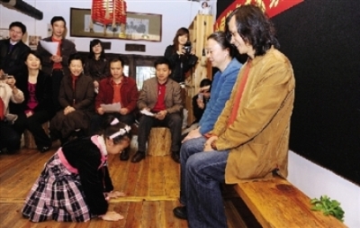 曾先生(市民):我认为这是一种文化的回归,一种民族自我的回归。行跪拜之礼,不在于形,但可以通过形式对中国古代经典文化进行继承。这种跪拜之礼,有人可能会说它是糟粕,但是,是否糟粕,谁来定论?为什么跪拜之礼就是糟粕?现在好多地方过年时,晚辈给长辈拜年也是跪着的呢。