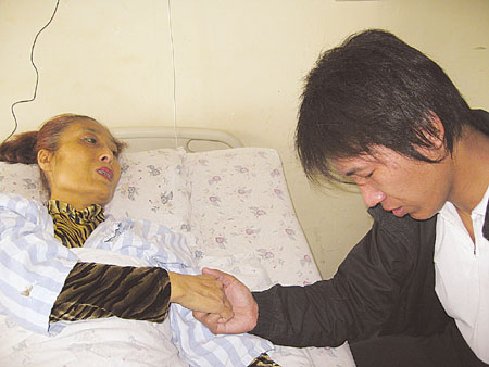 其实,早在2006年,在母亲患病中期,儿子常津铭就从网上查到关于肝脏移植手术的资料,但没想到母亲的病真的发展到这一步。当看着往日的漂亮妈妈皮肤黑黄,人也越发消瘦,儿子的心里难受极了。他安慰母亲:“老妈,你放心,需要换肝我一定给你。”当时,妈妈愣住了:“儿啊,你胡说什么,妈都这么大年纪了,你以后的路还长着呢!”“不行,老妈,我能救你而不救,我会遗憾一辈子的!”