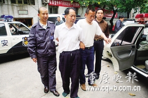 “出来!双手放头上!”4月17日下午,江北区五里店万丰小区4楼楼道转角处,一名穿着白衬衣,头发有点稀疏的中年男子,被端着冲锋枪的民警拉了出来。