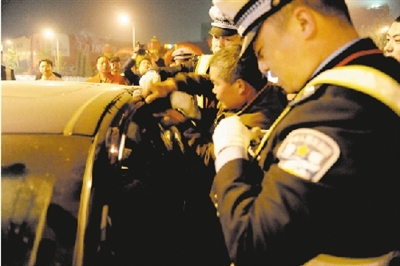 交警让这名叫方志刚的司机吹酒精显示仪,此时,他已完全服从民警安排,连吹4次,确认他的酒精含量未达到醉酒状态。民警以酒后驾驶,对这位司机处以500元罚款,驾证扣6分。随后,3人被交给颍河路派出所作进一步处理。(晚报首席记者 徐富盈 文/图)